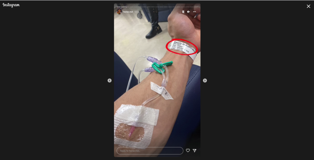 De Angelis made a statement on his Instagram story in Portuguese, along with sharing a picture of his hospital bracelet.